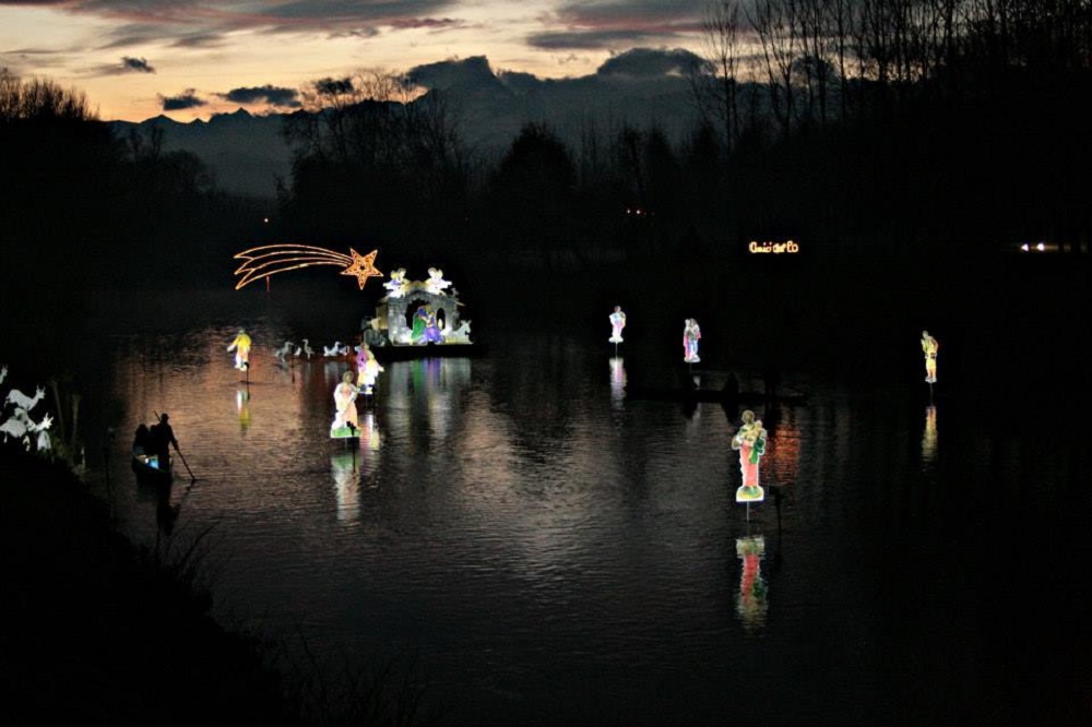 Villafranca Piemonte, la cittadina conosciuta per lo splendido presepe sul Po, senza perdere l’abito della tradizione piemontese, legata alla sua storia di pesca fluviale, ad un percorso di comunità di oltre 800 anni di storia e ad un ricchissimo patrimonio artistico e culturale, veste in dicembre un abito a festa Nordeuropeo, ricco di suggestioni per “grandi e piccini”, di spettacoli, di enogastronomia, di magia.