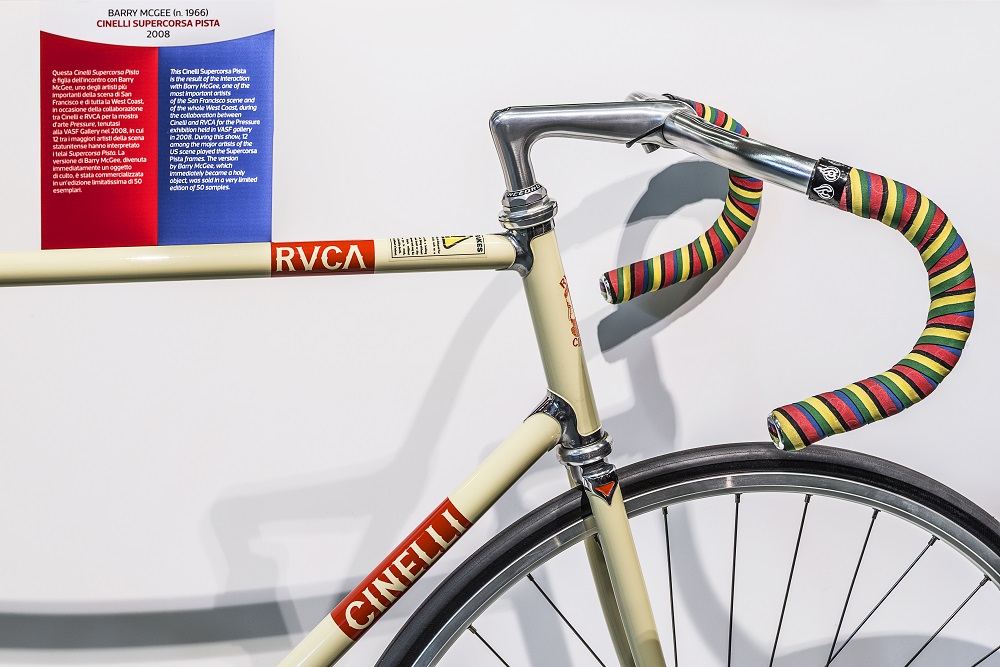 Nove biciclette d’artista, della collezione di Antonio Colombo, collezionista d’arte e Presidente di Cinelli, firmate da designer di fama internazionale: Alchymia, Alberto Biagetti, Sergio Calatroni, Death Spray, Barnaba Fornasetti, Stevie Gee, Max Lamb, Barry McGee, Alessandro Mendini, raccontano l’evoluzione del concetto di design applicato alla bicicletta.