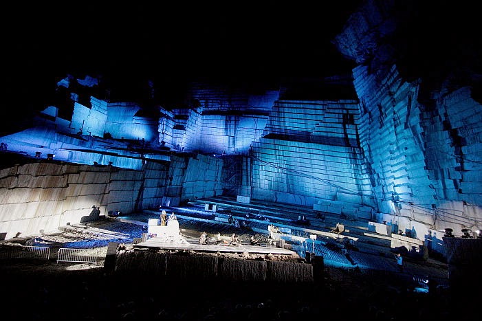 Inaugurazione giovedì 17 luglio alle ore 21.30 con Tosca di Giacomo Puccini, nuova produzione in prima assoluta, nell’innovativo e unico allestimento digitale realizzato in video 3D mapping da AreaOdeon. Il collettivo monzese, noto a livello internazionale per le performance di video arte oltre che per il Kernel Festival, realizzerà le scenografie in 3D che saranno proiettate sulle pareti di roccia: fasci di luce e immagini in tre dimensioni animeranno le quinte sceniche e i fondali naturali costituiti dalle enormi lastre di marmo, per un’esperienza unica di teatro musicale e arti digitali.