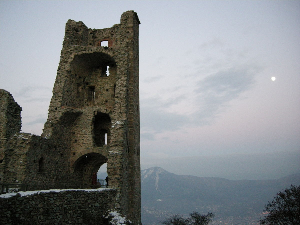 Il muraglione perimetrale delle Rovine che circondano l’Abbazia termina con una torre a strapiombo sul precipizio del monte: è la cosiddetta Torre della Bell’Alda, che prende il nome dall’omonima leggenda.