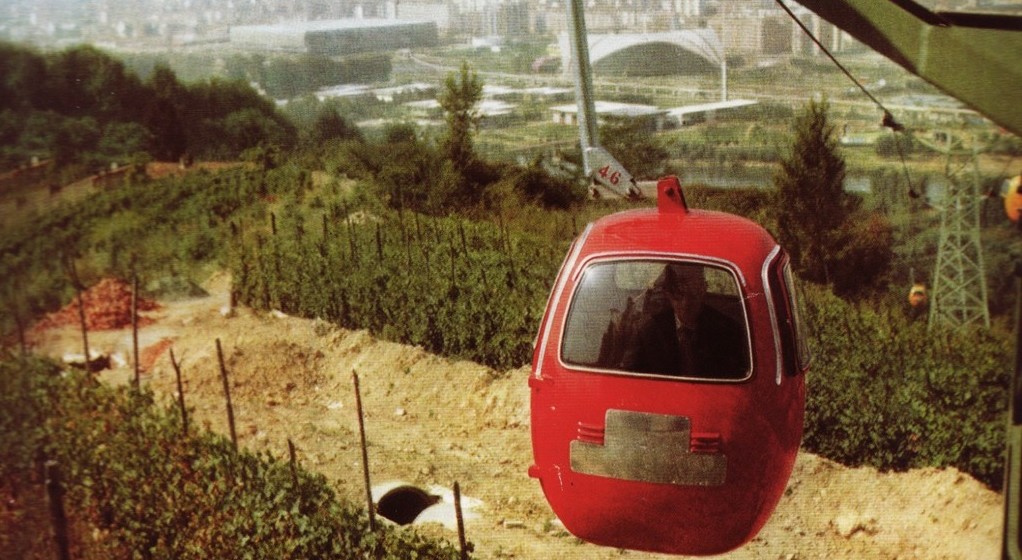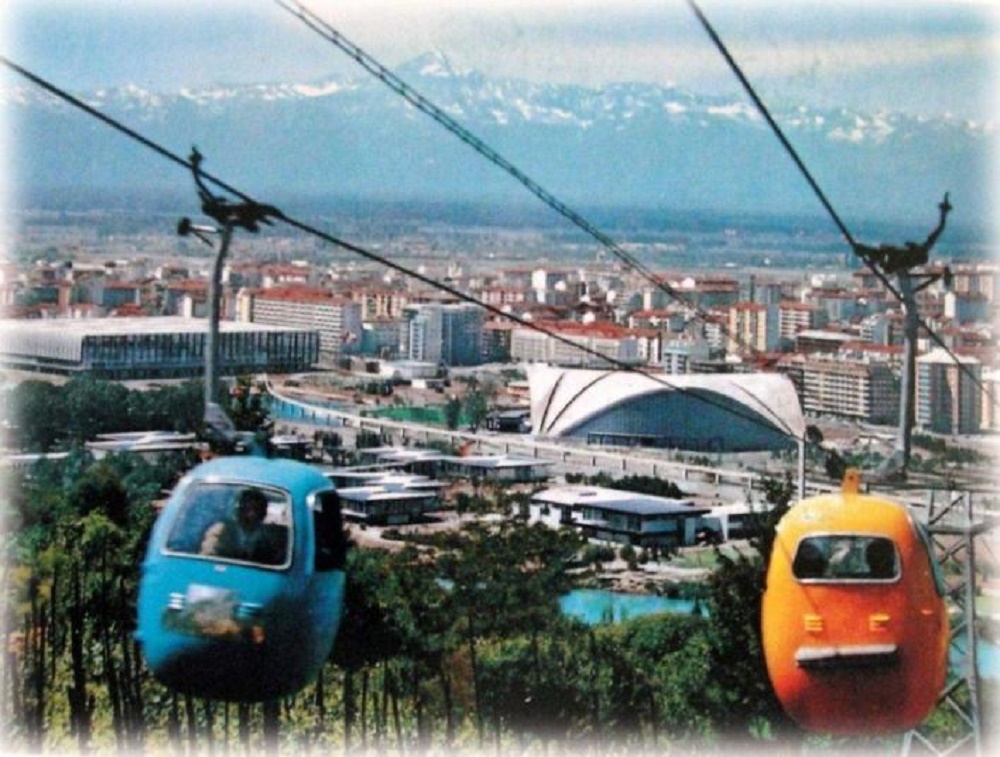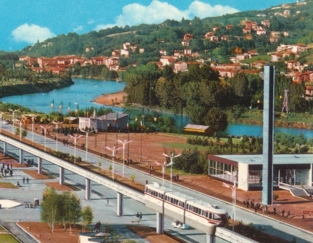 Un altro splendido progetto di ampio respiro fu il sistema di collegamento tra la nuova area di Italia ‘61 e il Parco Europa, oltre il Po con l’Ovovia.
